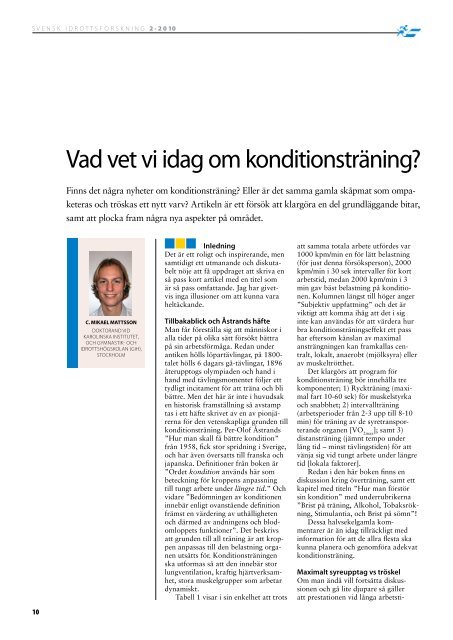 Vad Vet Vi Idag Om Konditionstra Ning 2010 Gih